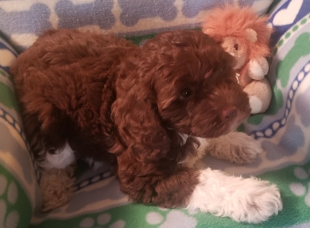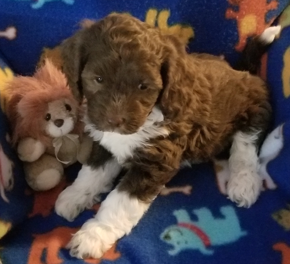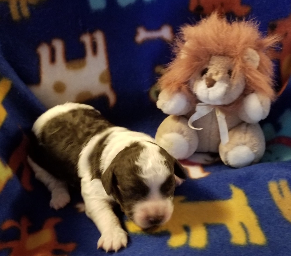 We would like to announce the addition of five new puppies to the Woofy World Family. We have four Chocolate Parti puppies (one female and three males). We also have one male tri-coloured puppy. They are going to be the “The Big Bang Theory” litter with Sheldon, Leonard, Howard, Raj, and Penny.