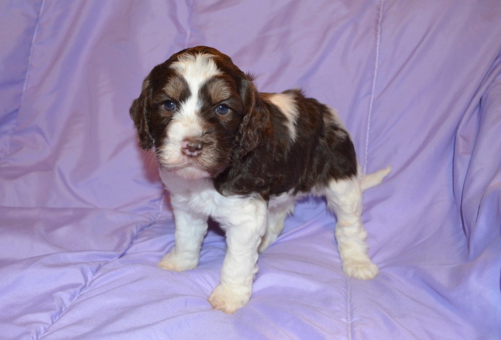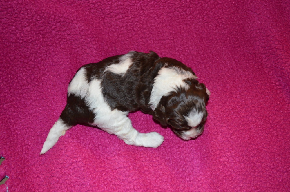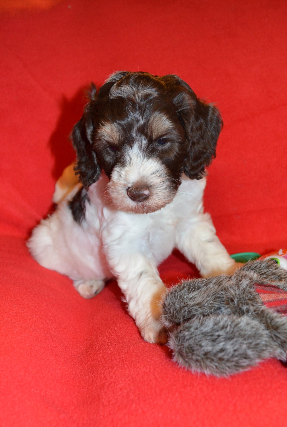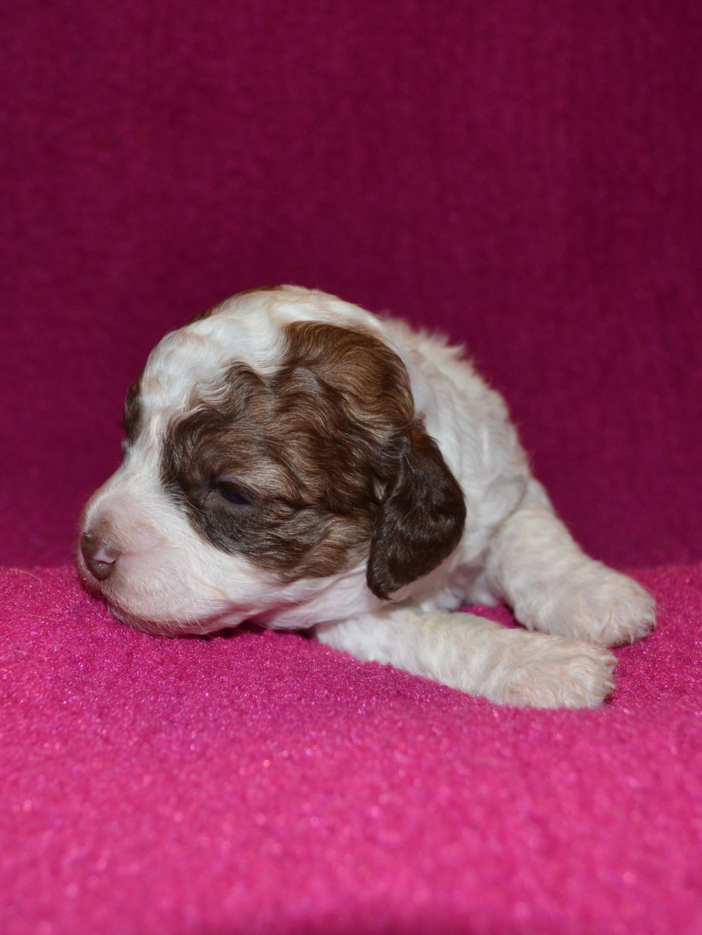 These 5 adorable puppies are thriving and are so beautiful! We have a full parti-coloured litter of 2 Females and 3 Males.