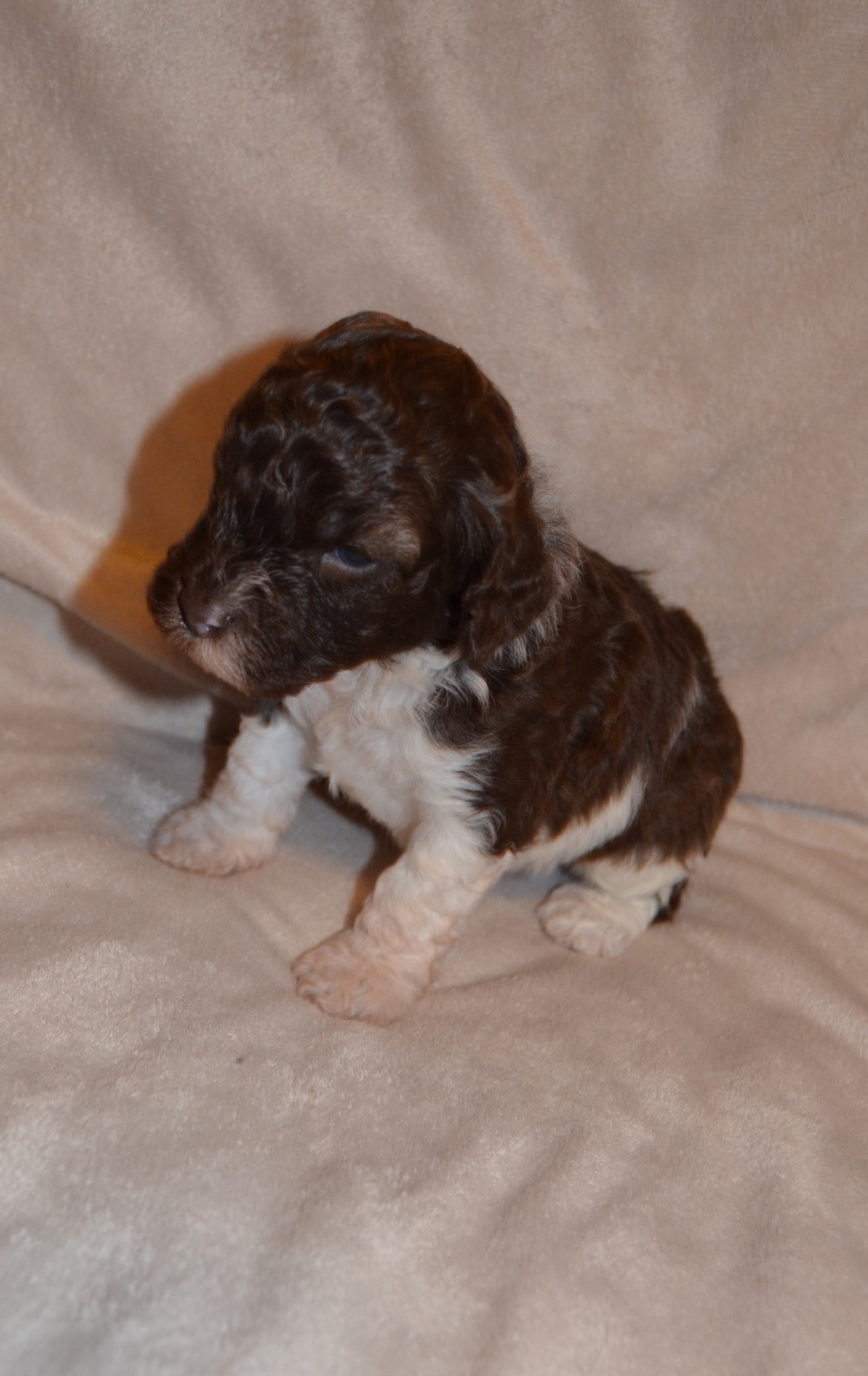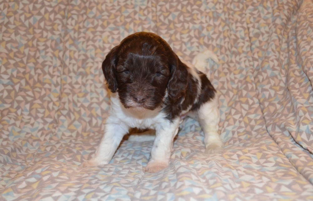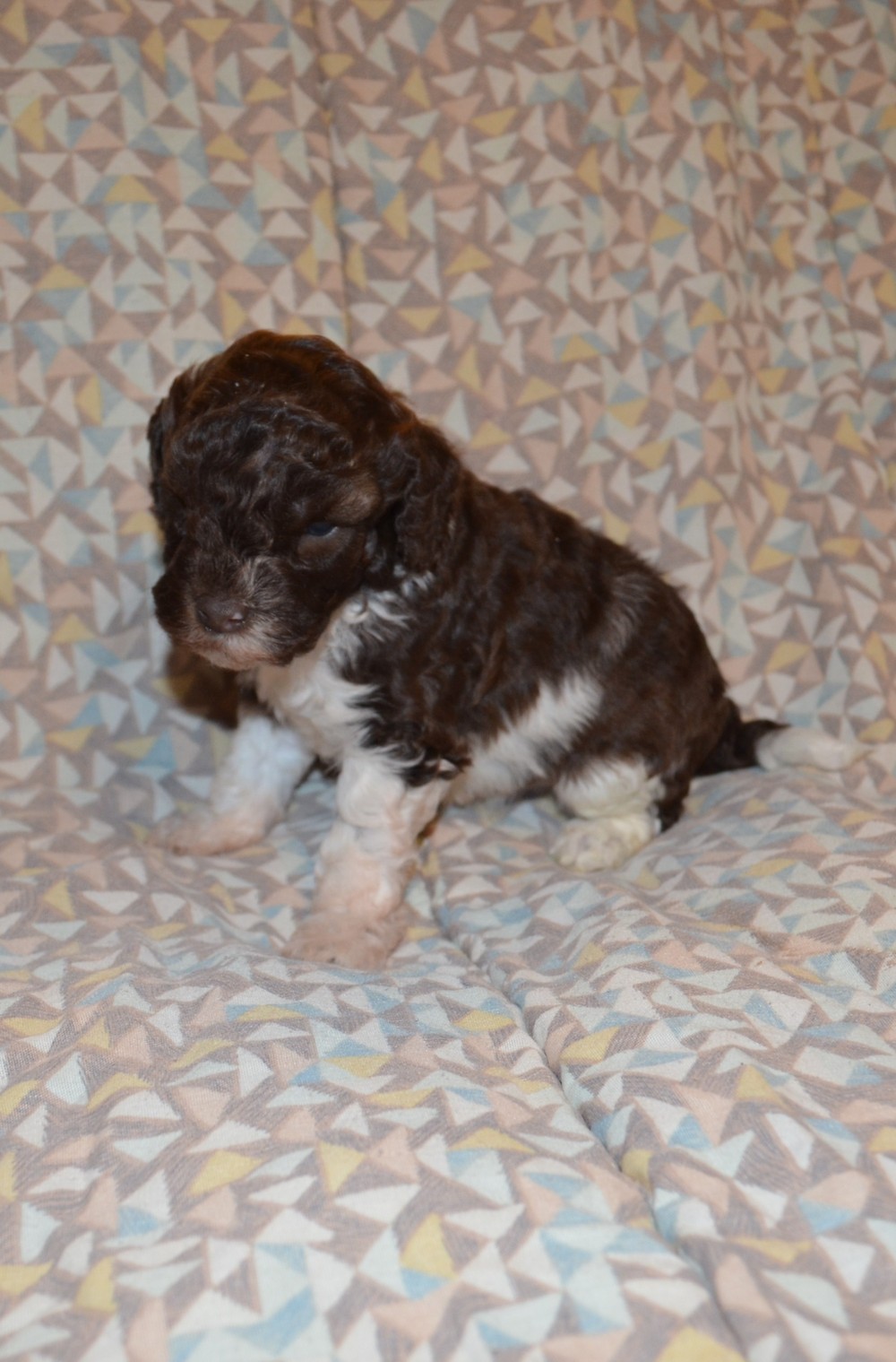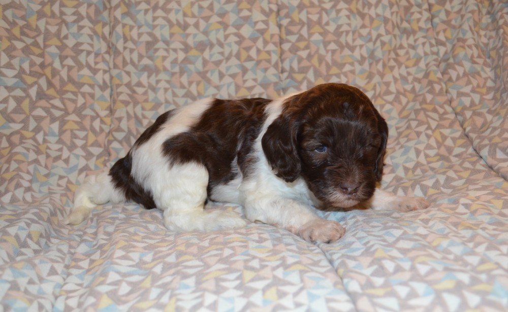 These 5 adorable puppies are thriving and are so beautiful! We have a full parti-coloured litter of 2 Females and 3 Males.