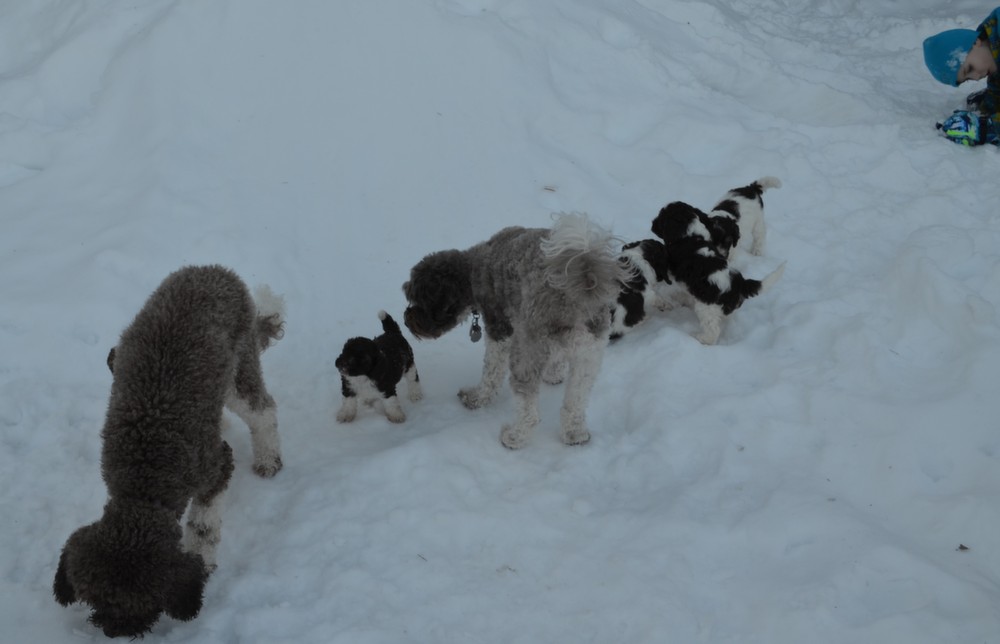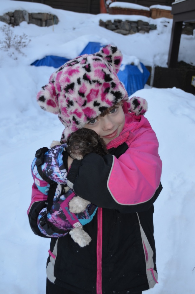 The puppies enjoyed their first adventure in the snow this week! After their play in the snow they came in for a warm sudsy bath. Their coats are growing out so lovely and they are all growing and developing so well.